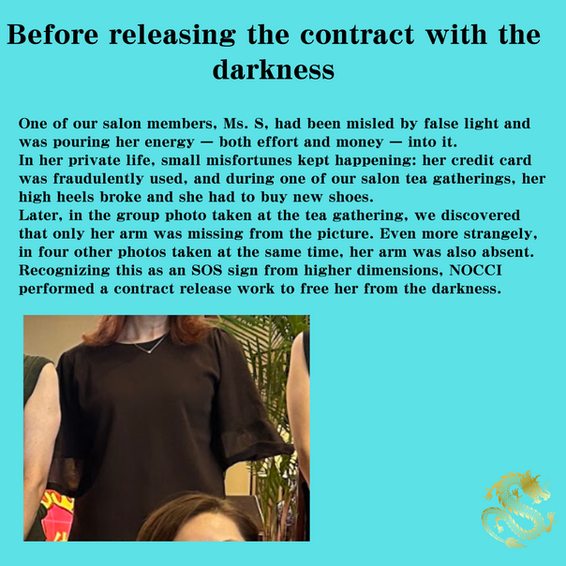 近年は、契約解除・カルマ解消・ブラックマジックの解除・トラウマとインナーチャイルドの癒しといった、多次元レベルでの解放ワークを本格的にスタート。クライアントは不要なエネルギー的束縛や家系的制限から解放され、本来の魂の力を取り戻しています。
