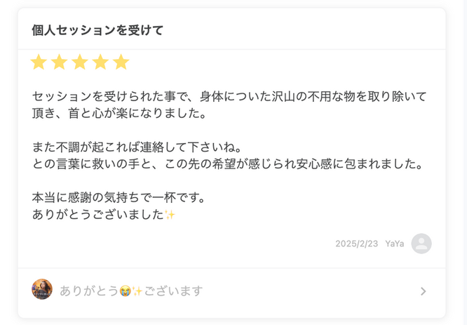 Perhaps because NOCCI is the kind of person who interacts with people in this way, everyone in the special salon group feels that other people's joy is their own joy. They come up with solutions to other people's problems and improve each other. This is the kind of feeling that makes it a truly warm group. It's a group that not only heals the soul, but also raises self-esteem. NOCCI conducts the course based on his own experiences, so it was easy to understand and I was able to proceed without any doubts.